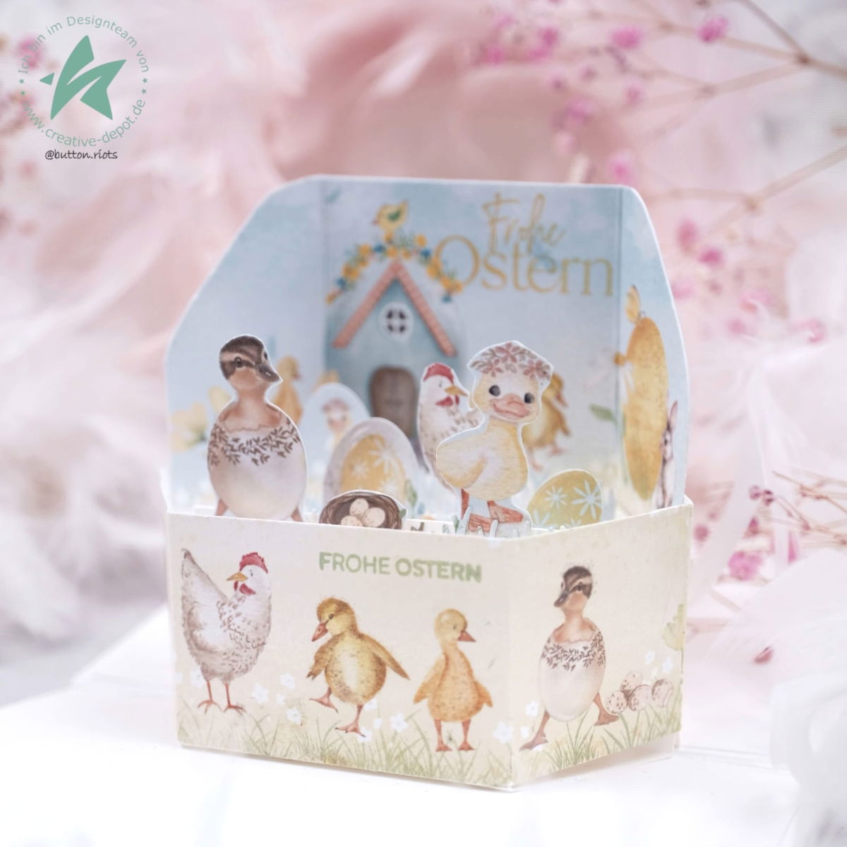 La hoja de papel de diseño "Designline - Kleine Osterwelt" mide 30,5 x 30,5 cm, tiene un grosor de papel de 200 g/m² y un acabado mate.