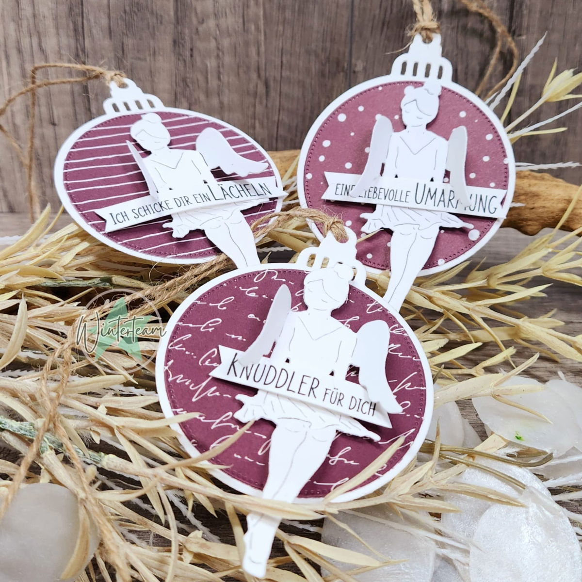 Wir sind ganz verliebt in unsere Engelsprinzessin! Sie macht sich ganz wunderbar auf winterlichen Karten, z.B. sitzend auf unserem skandinavischen Kranz. Aber auch auf einem gestempelten Kranz macht sie eine richtig gute Figur. Besonders klasse finden wir es, dass wenn ihr die Flügelchen abtrennt, die Engelsprinzessin sich auch prima als Ballerina auf typischen Mädchenkarten macht. Probiert es einfach mal aus :)
