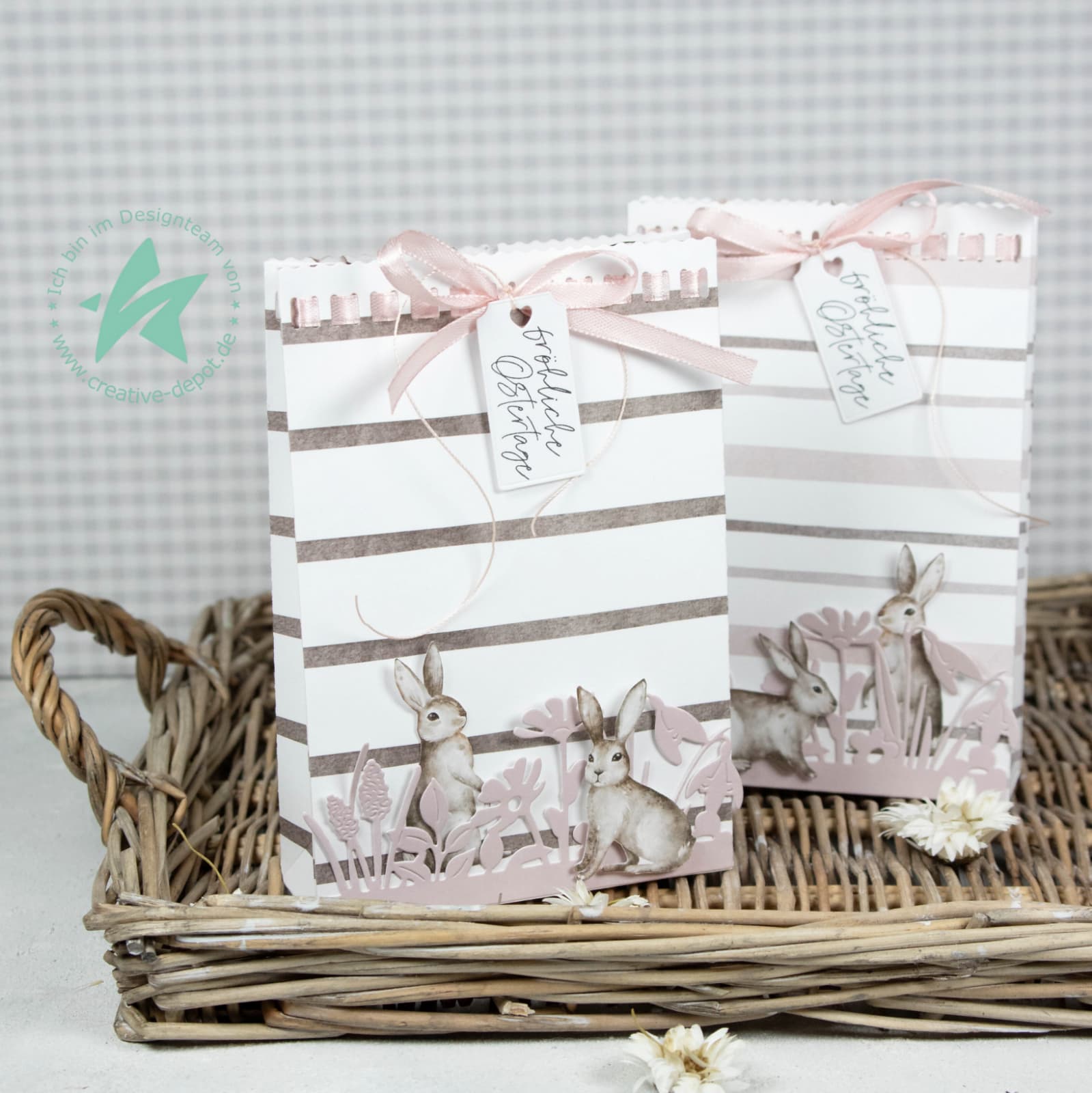 Designpapier - Osterkränze mit Federn - Doppelseitig bedruckt