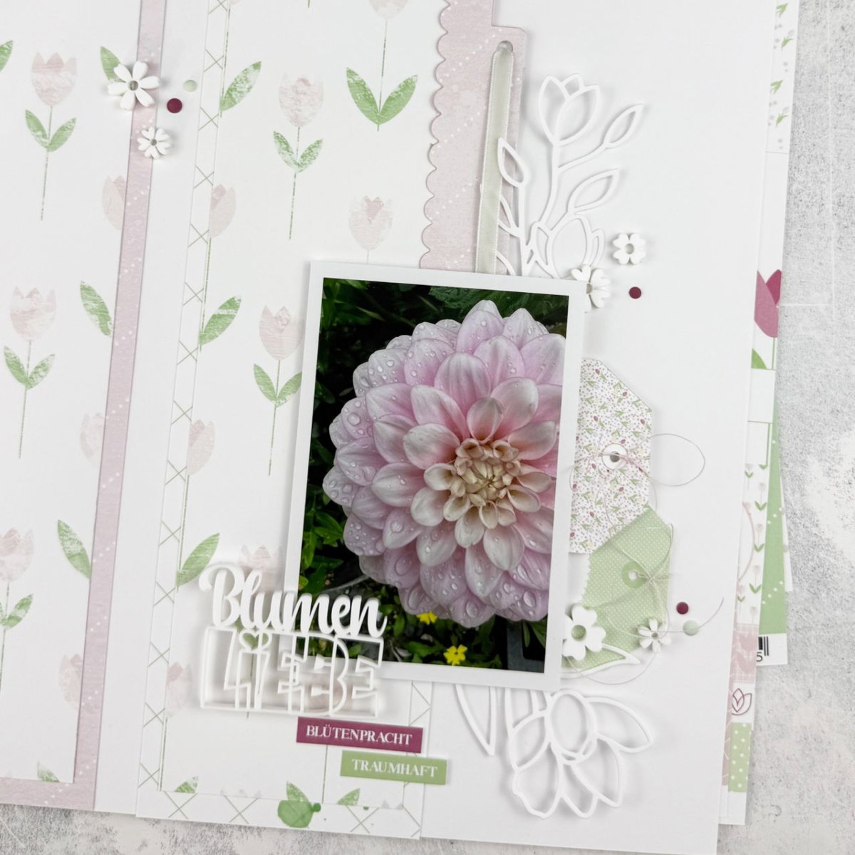 Información sobre el producto "Designpapier - Scrapliebe - Tulpenliebe - Minikaro - Doppelseitig bedruckt "