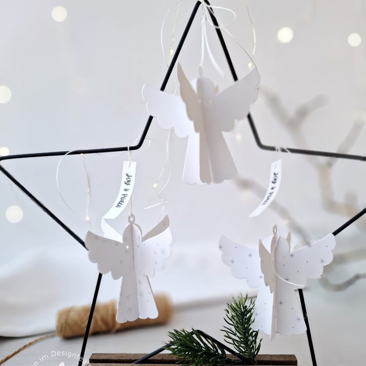 El punzón ángel es un punzón diseñado con mucho cariño para hacer un estilizado ángel de papel. En unos sencillos pasos, puedes crear una delicada figura a partir de las dos partes recortadas, que impresiona por su forma sencilla y sus líneas elegantes. Perfecto para la época navideña o como ángel de la guarda durante todo el año.