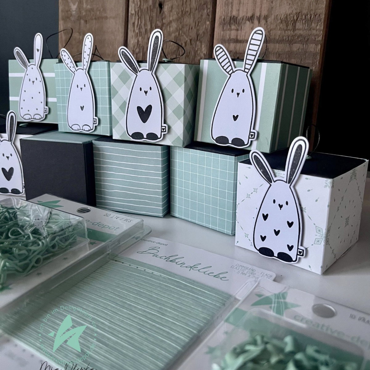 Designpapier - Basic - Eukalyptus - Fliesen + Doodle Streifen - Doppelseitig bedruckt