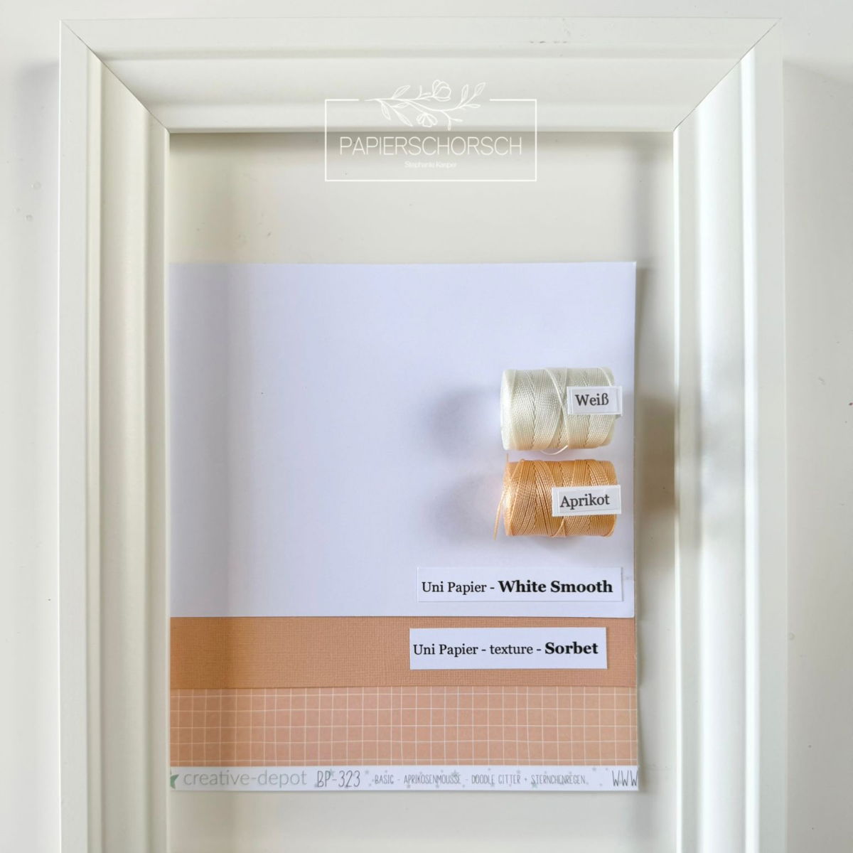 Información sobre el producto "Papel de diseño - Basic - Aprikosenmousse - Doodle Gitter + Sternchenregen - Doppelseitig bedruckt"