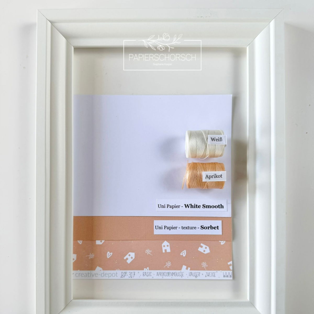 Información sobre el producto "Papel de diseño - Basic - Aprikosenmousse - Häuser + Zweige - Doppelseitig bedruckt"