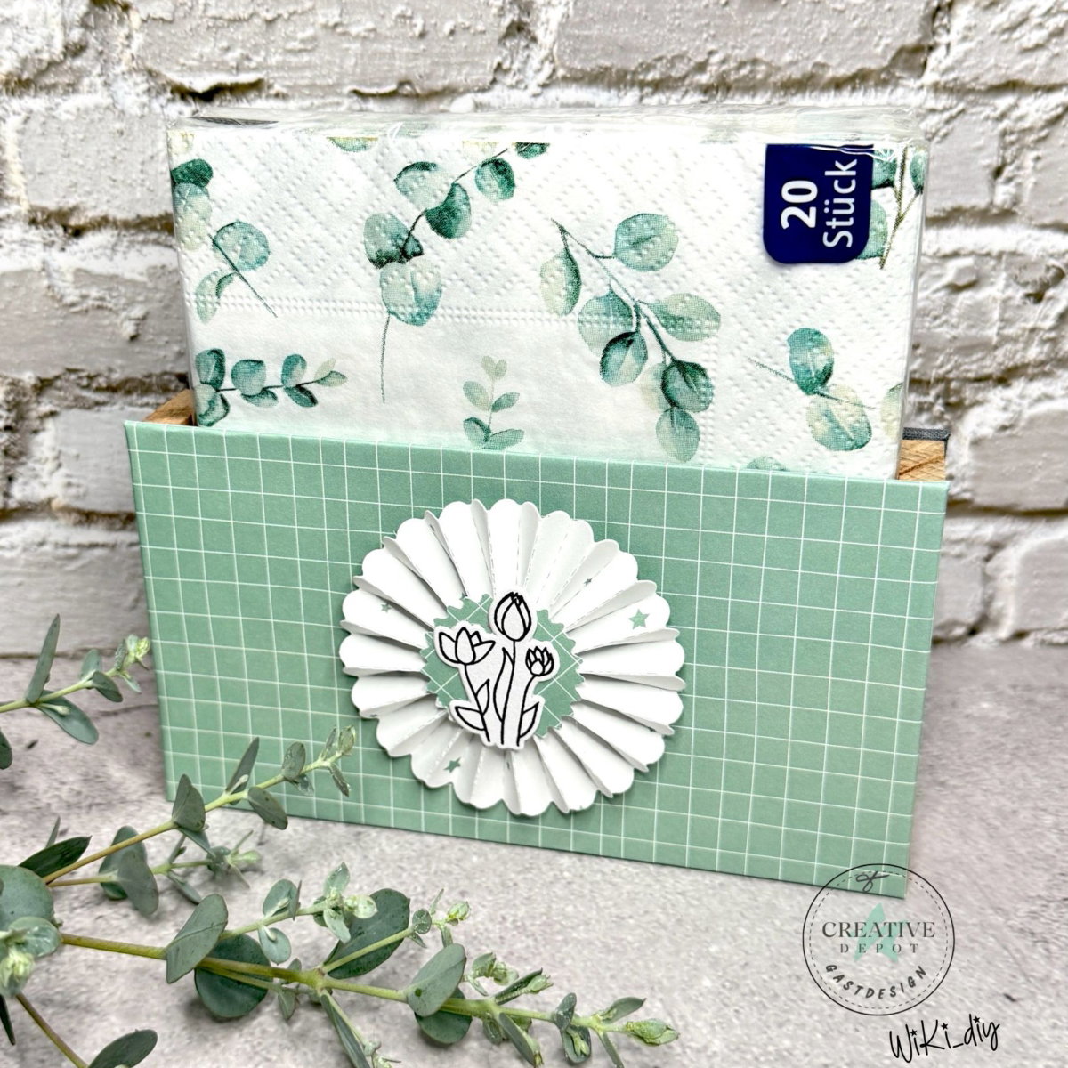 Designpapier - Basic - Eukalyptus - Fliesen + Doodle Streifen - Doppelseitig bedruckt