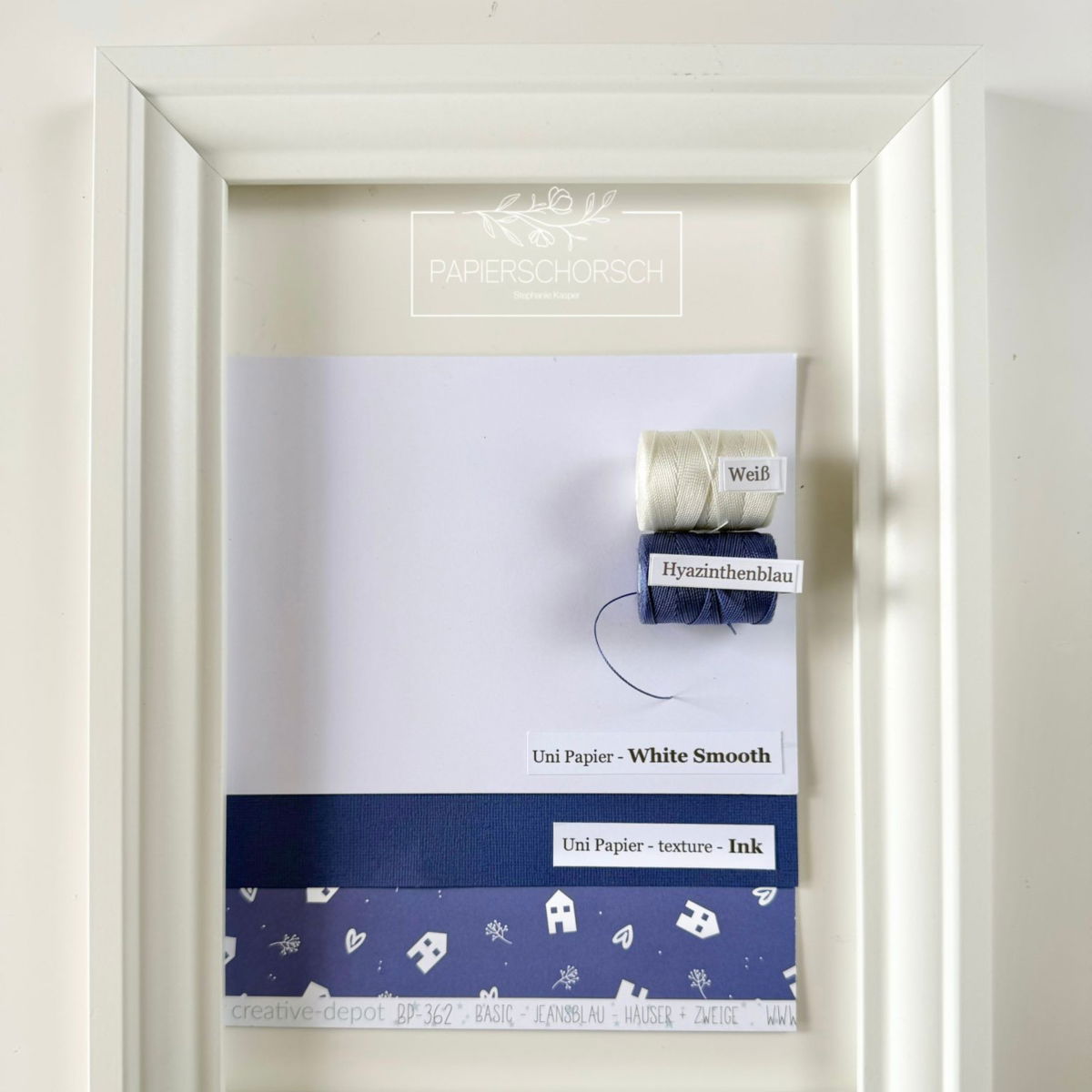Información sobre el producto "Papel de diseño - Basic - Jeansblau - Häuser + Zweige - Doppelseitig bedruckt"