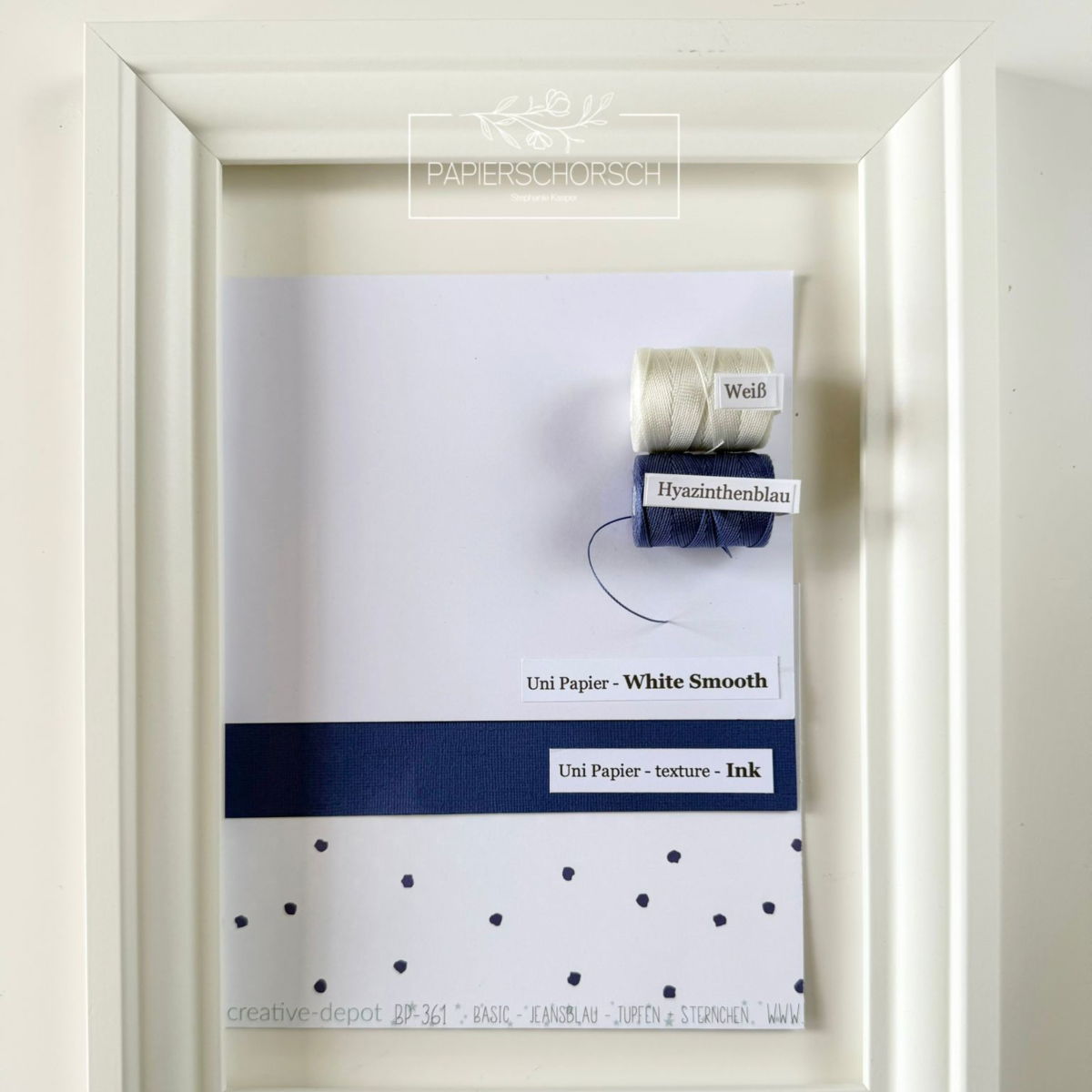Información sobre el producto "Papel de diseño - Basic - Jeansblau - Tupfen + Sternchen - Doppelseitig bedruckt"