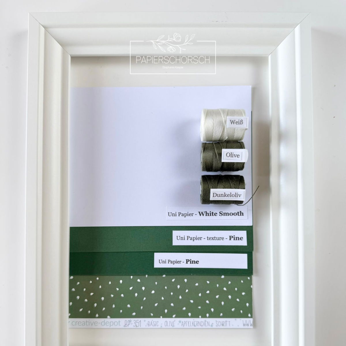 Información sobre el producto "Papel de diseño - Basic - Olive - Apfelkernchen + Schrift - Doppelseitig bedruckt"