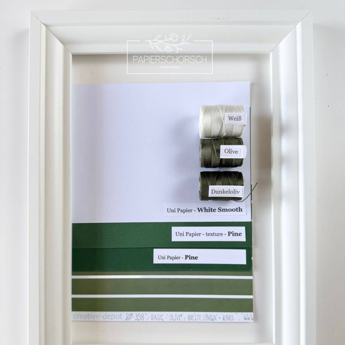 Información sobre el producto "Papel de diseño - Basic - Olive - Breite Linien + Karo - Doppelseitig bedruckt"