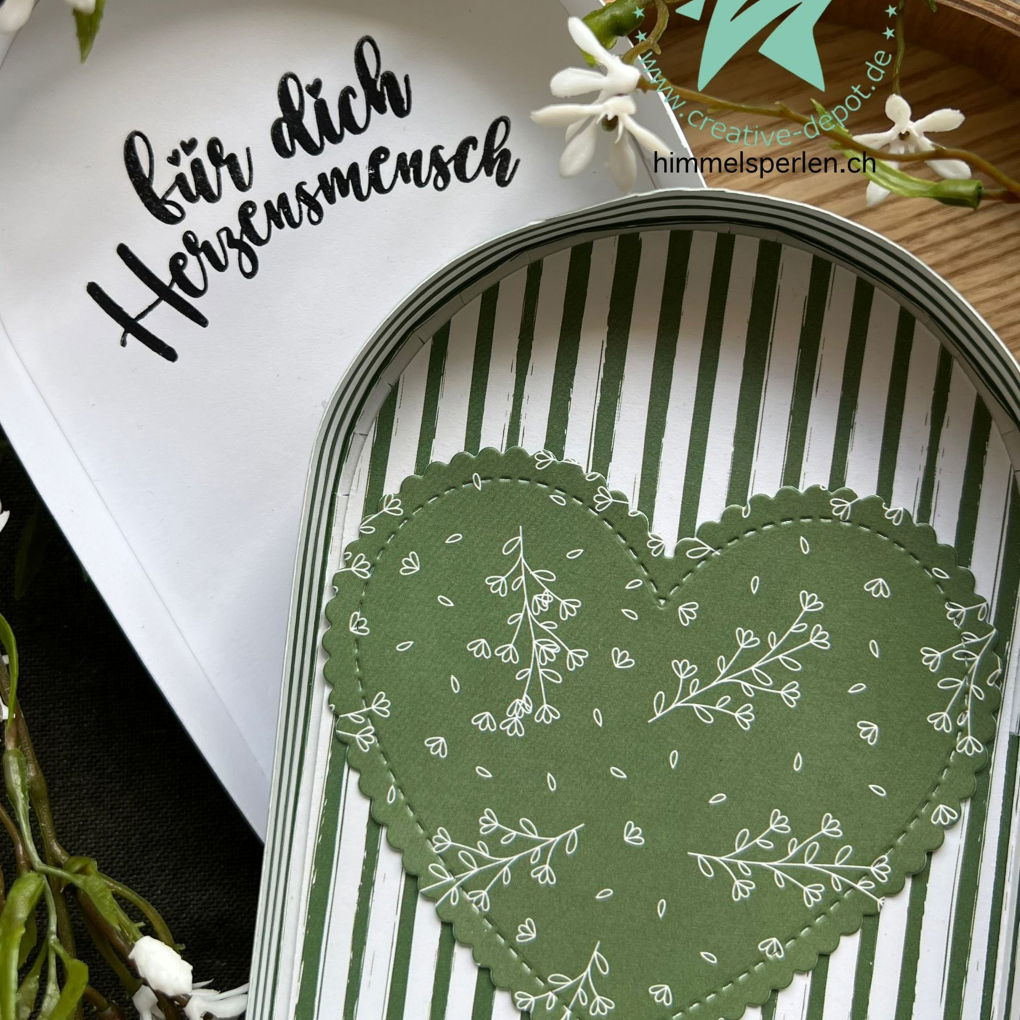 El papel de diseño "Basic - Olive - Häuser + Zweige - Doppelseitig bedruckt" mide 30,5 x 30,5 cm, tiene un grosor de papel de 200 g/m² y un acabado mate.