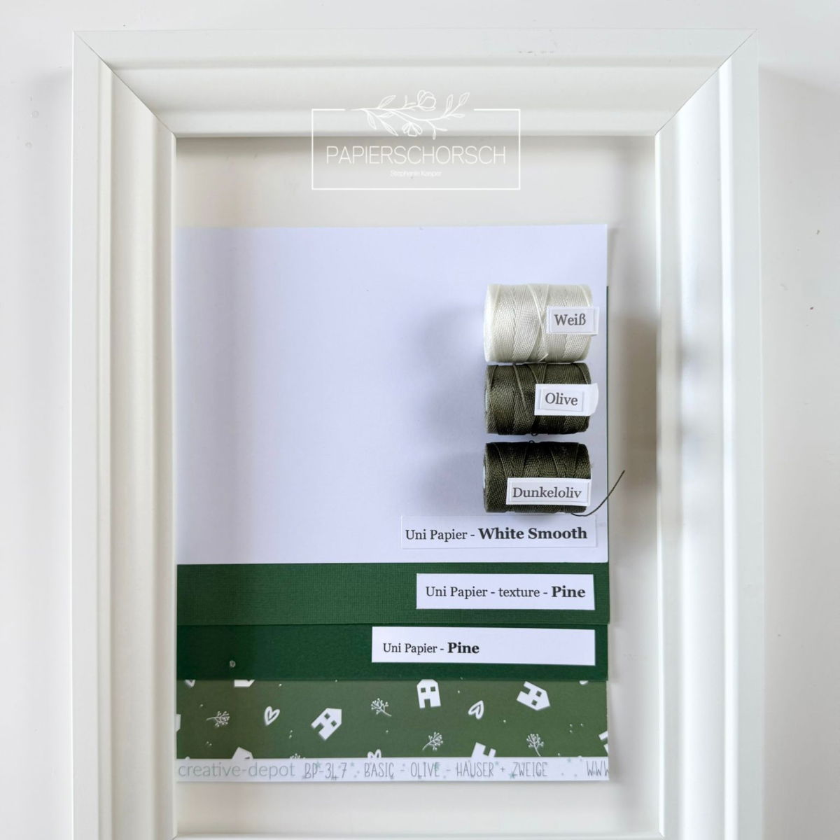 Información sobre el producto "Papel de diseño - Basic - Olive - Häuser + Zweige - Doppelseitig bedruckt "