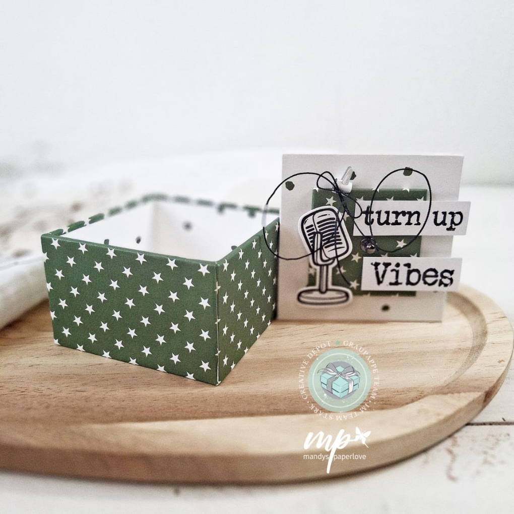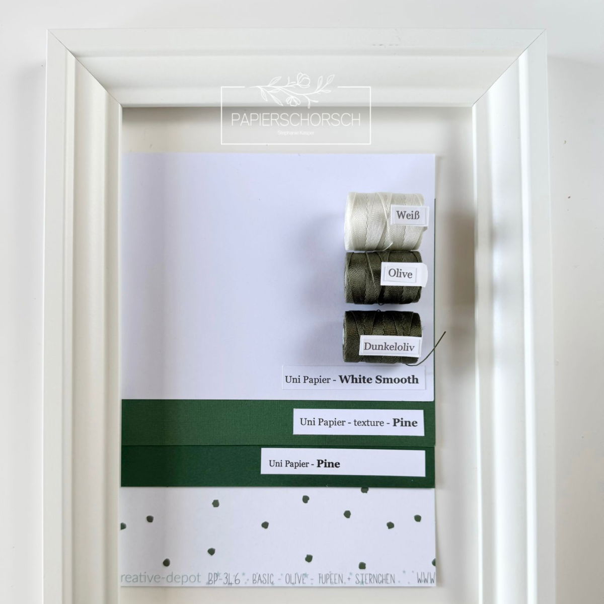 Información sobre el producto "Papel de diseño - Basic - Olive - Tupfen + Sternchen - Doppelseitig bedruckt"