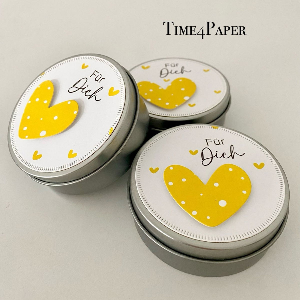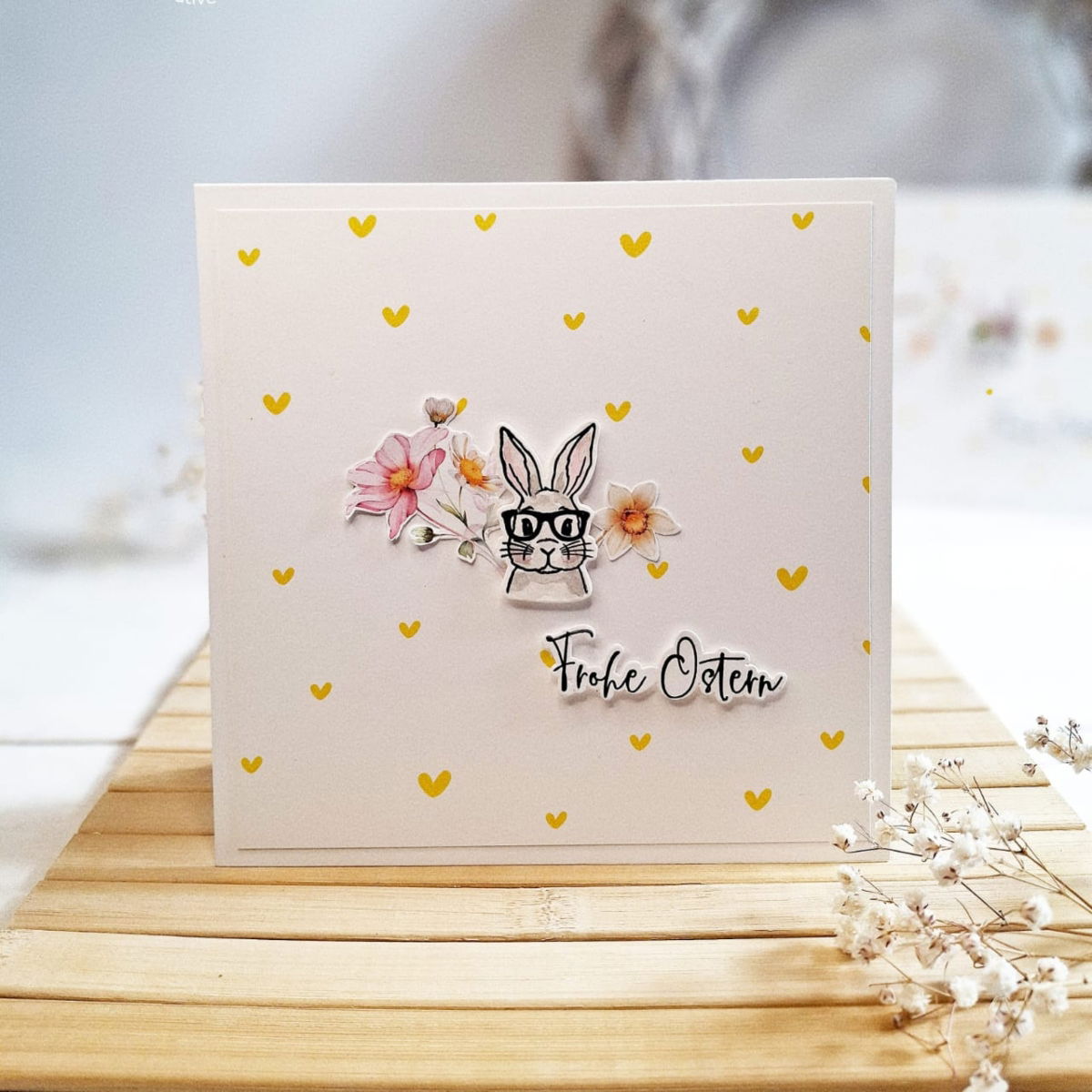 Papel de diseño - Basic - Ostergelb - Doodle Herzen + Sprenkel - Doppelseitig bedruckt