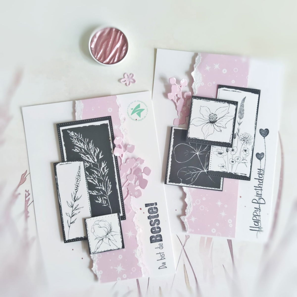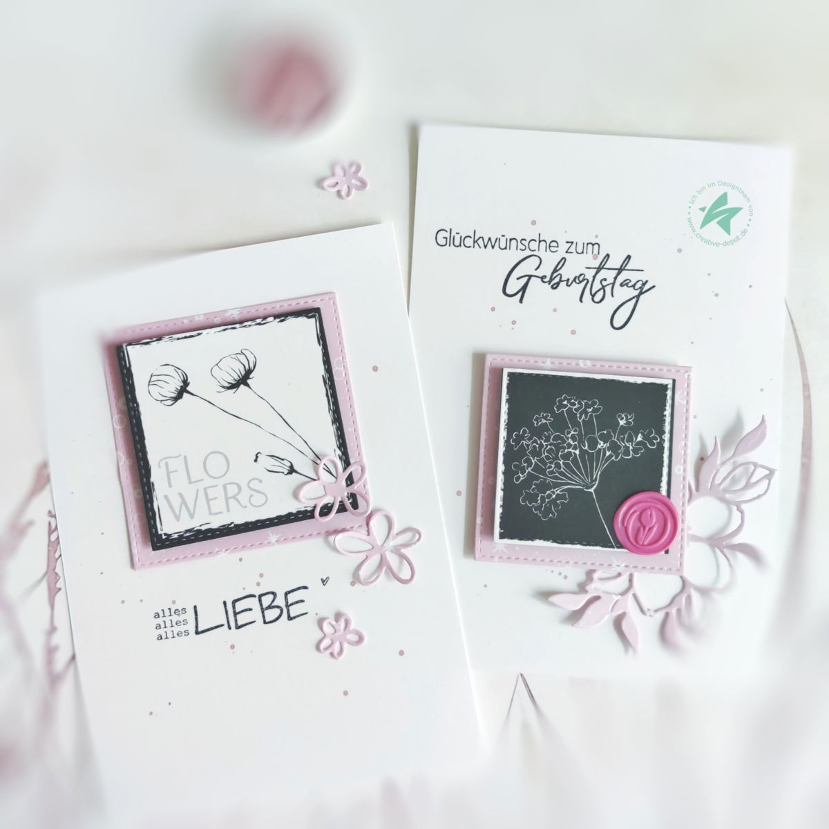 Papel de diseño - Basic - Schwarz - Newspaper + Wildflowers - Doppelseitig bedruckt
