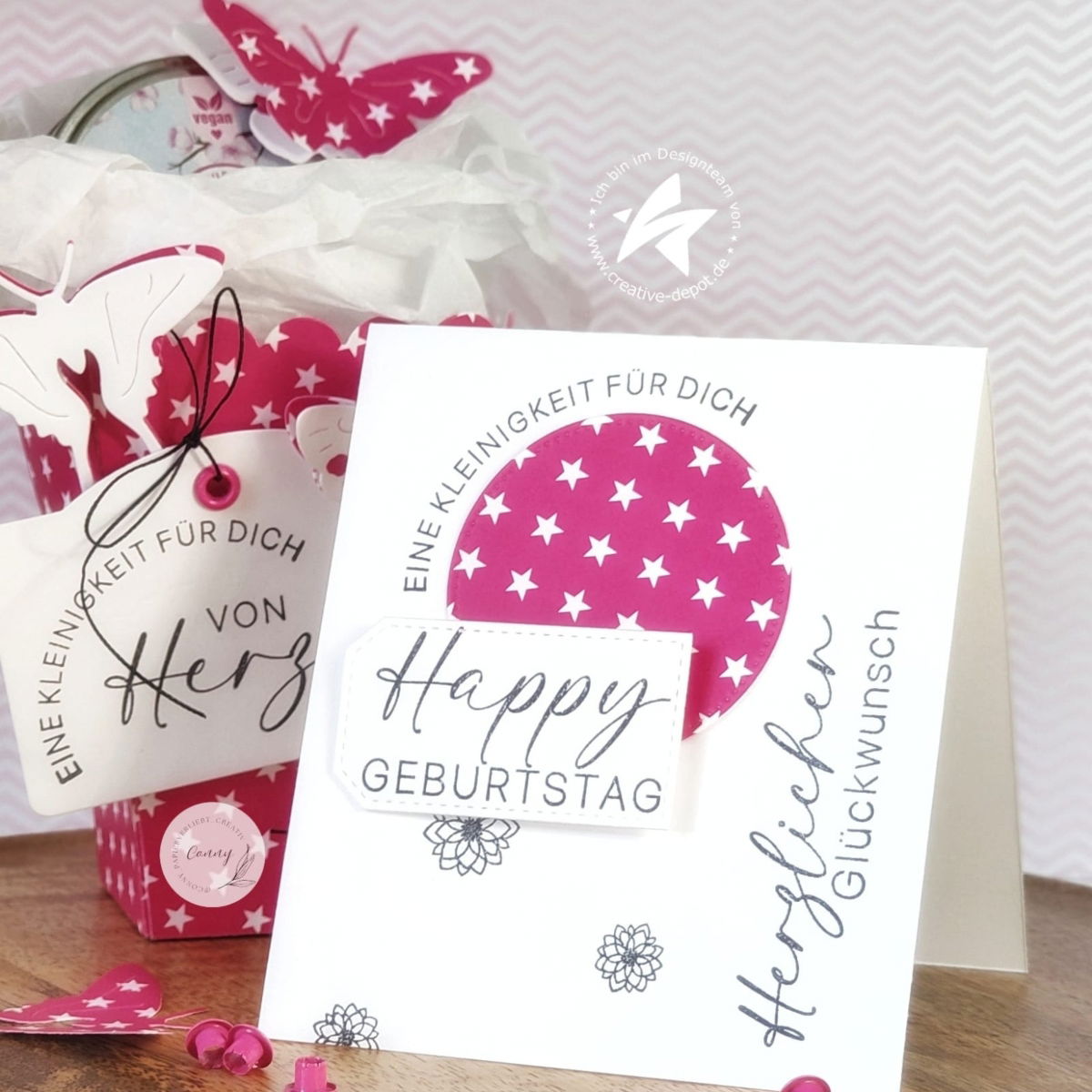 Papel de diseño - Basic - Sommerpink - Tupfen + Sternchen - Doppelseitig bedruckt