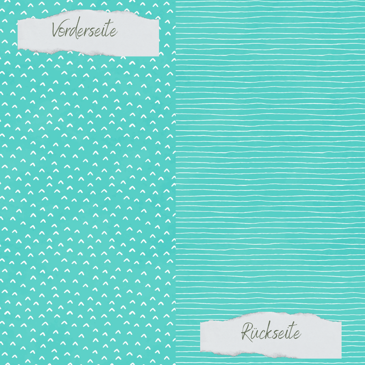 Información sobre el producto "Papel de diseño - Basic - Sommertürkis - Doodle Dächer + Streifen beidseitig bedruckt"