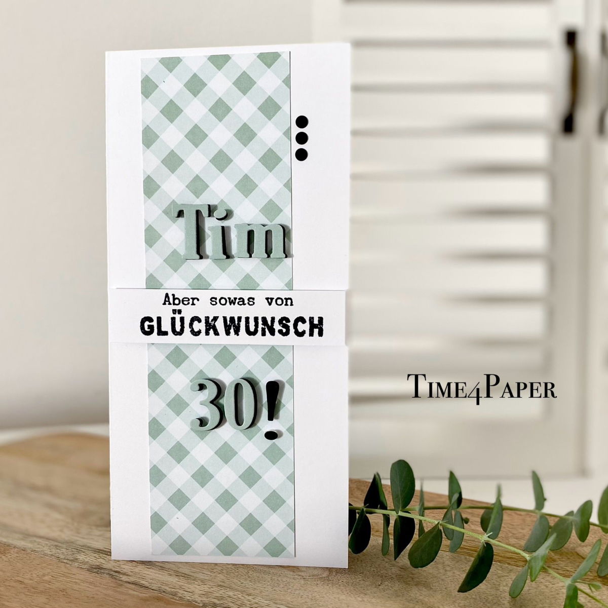 Papel de diseño - Basic - Vintage Mint - Breite Linien + Karos - Doppelseitig bedruckt