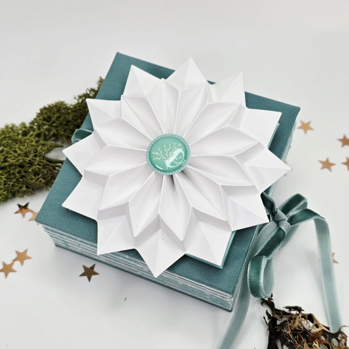 ⭐🎄✨Una preciosa estrella plegada de unos 11 cm de diámetro 🌟, perfecta para tus decoraciones navideñas.
