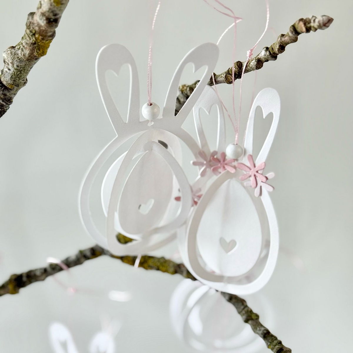 Ya sea a la luz del sol o con la suave brisa primaveral, este gran colgador de conejitos aporta movimiento,