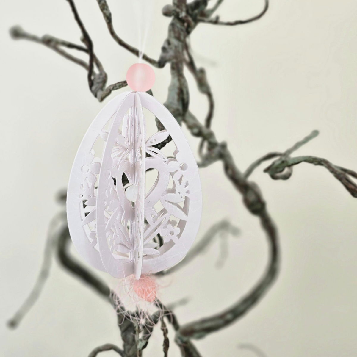 Antes de pegar los dos últimos huevos, coloca una cinta entre ellos para colgarlos.