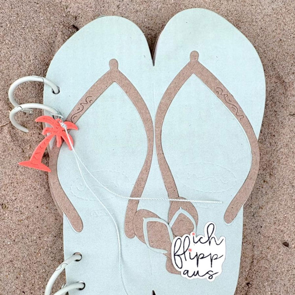 Con una palmera, una sombrilla, chanclas y una tabla de surf, se incluye todo lo que necesitas para un día perfecto en la playa. 🏄♀️🌊