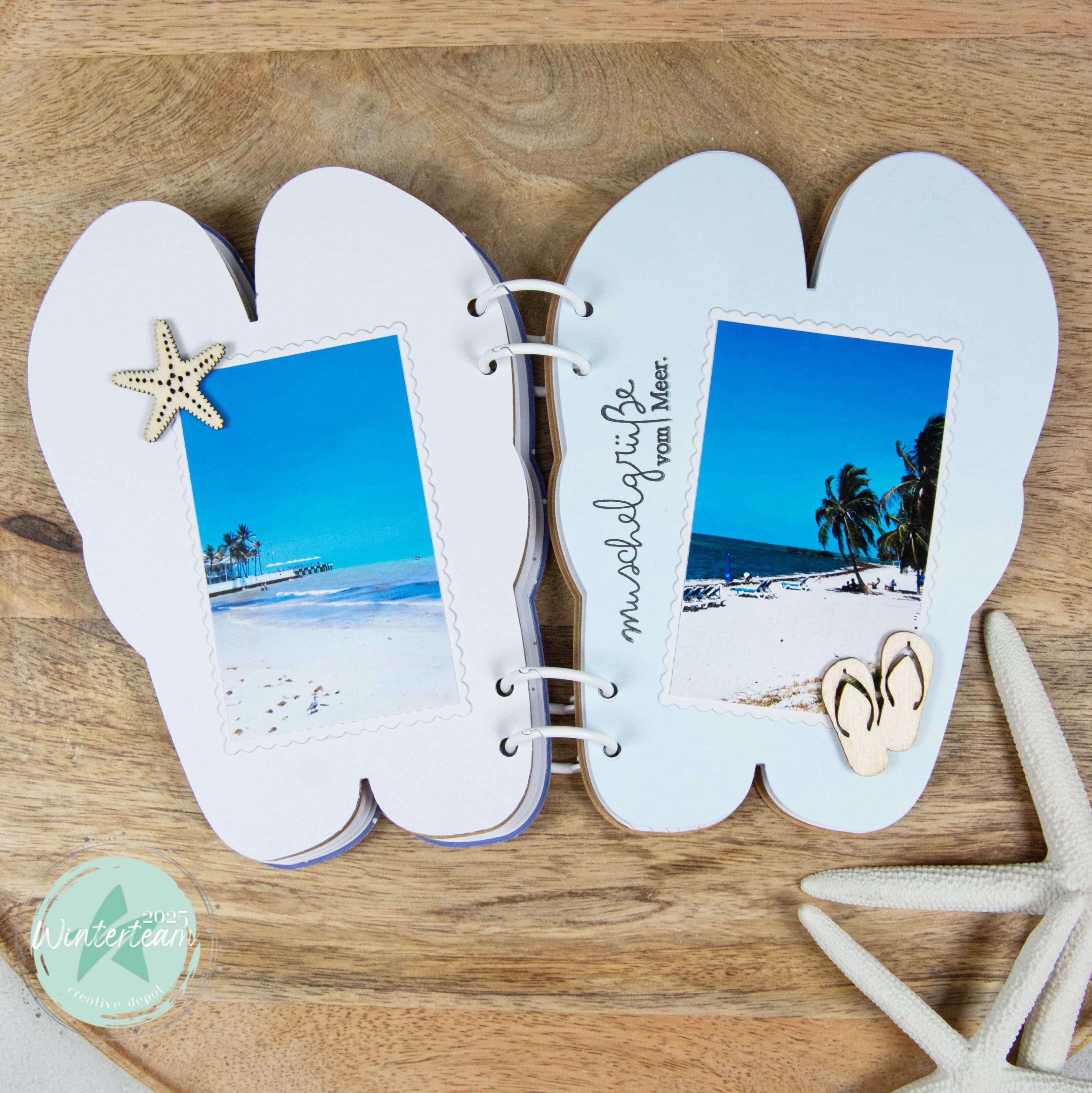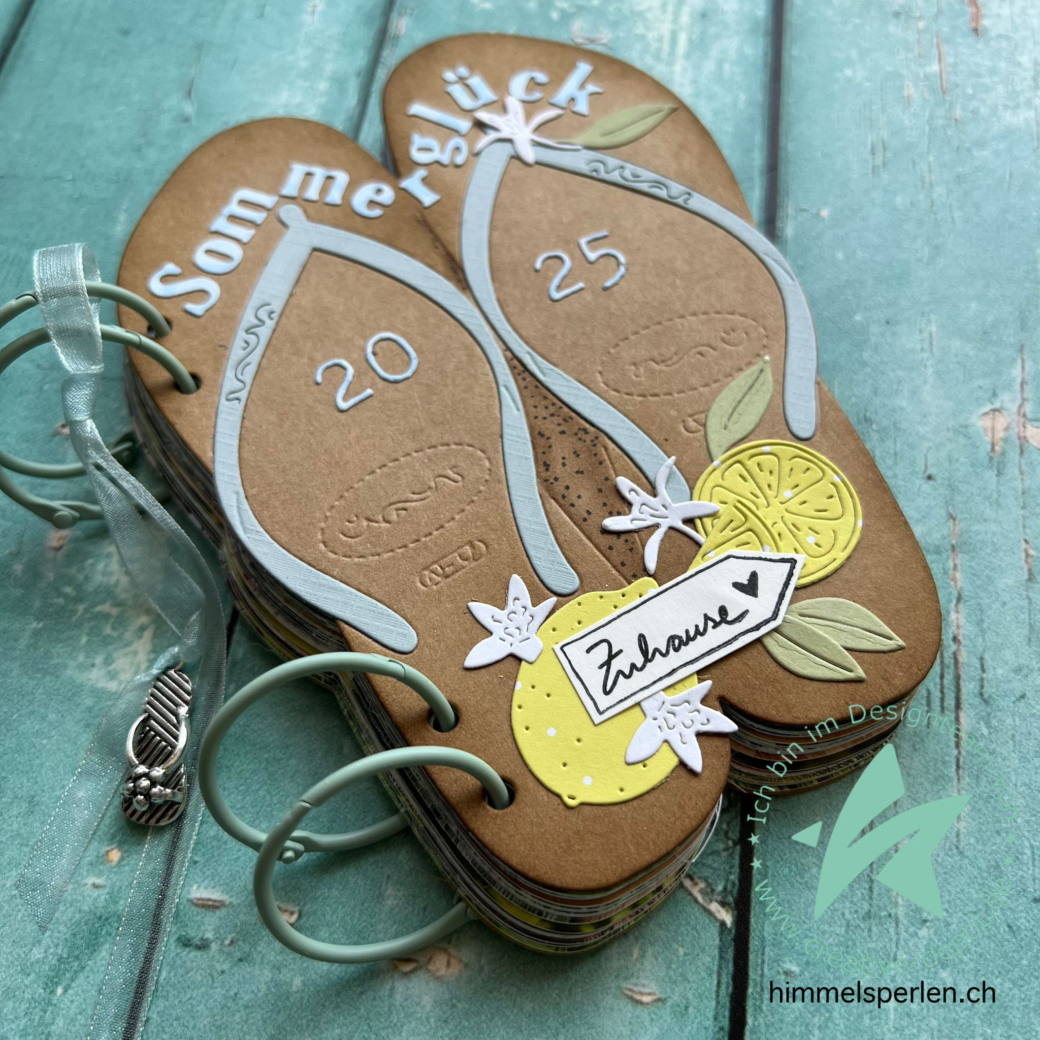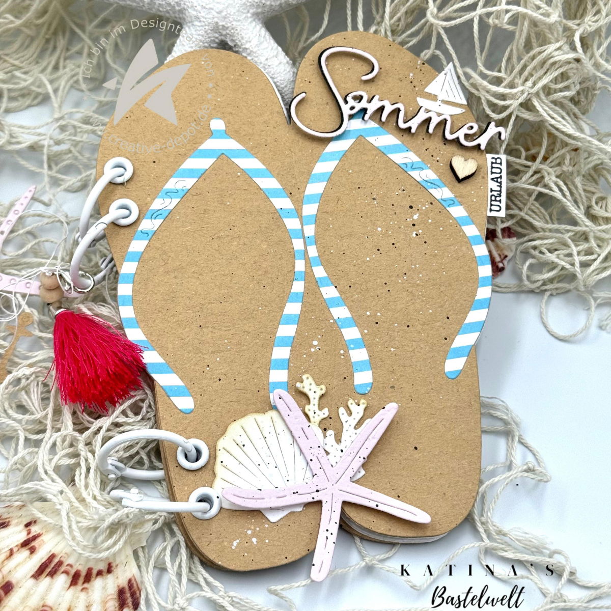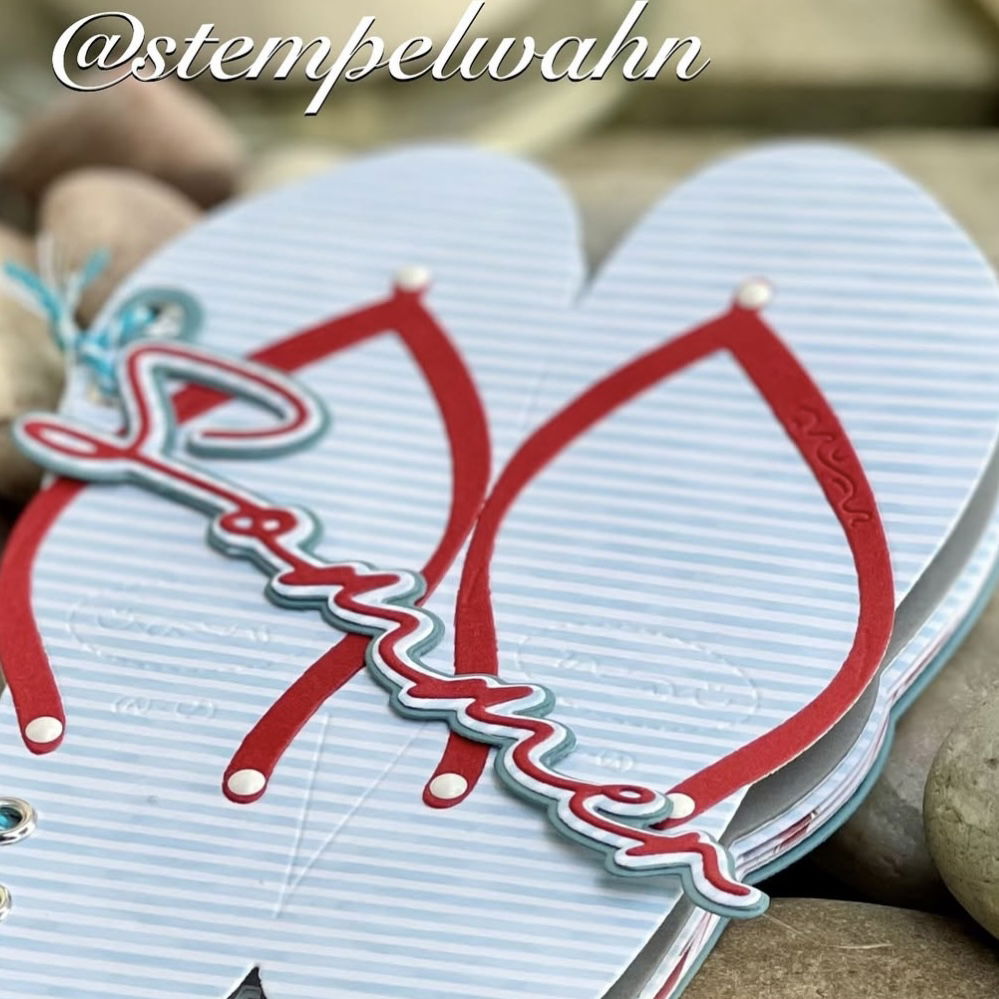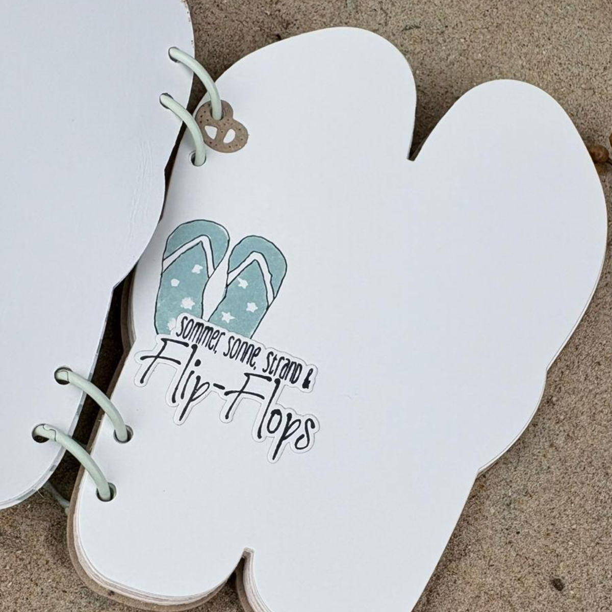 🩴📔🌞📸🏖️🌊🎀✂️🖌️Mit ¡Puedes capturar creativamente tus recuerdos favoritos del verano 🌞🏖️ en este encantador miniálbum en forma de chanclas 🩴! Las bonitas sandalias con su fino relieve ✨ aportan al instante una sensación veraniega a la mesa de manualidades.