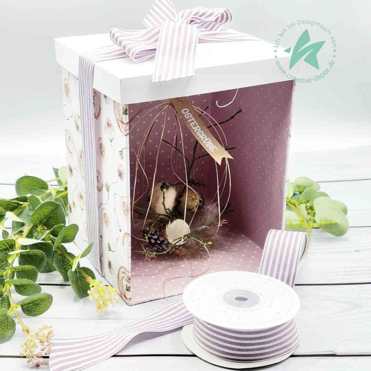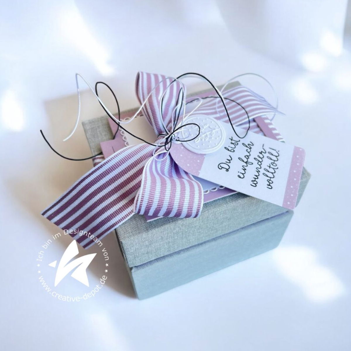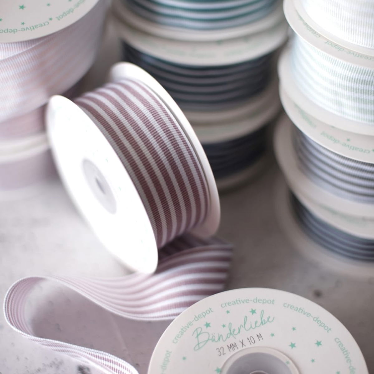 Gestreiftes Band - Weiß & Malve - Bänderliebe
