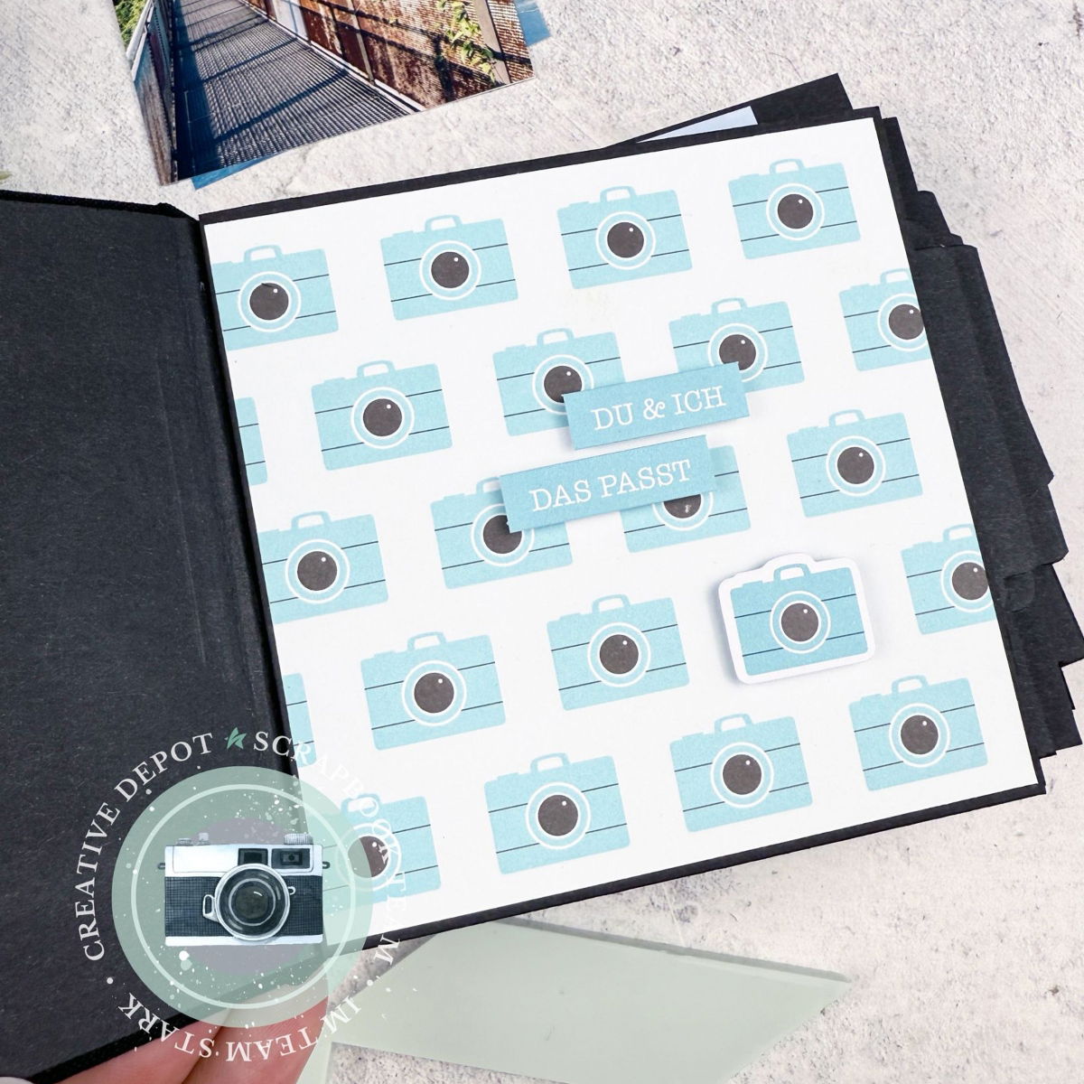 Información sobre el producto "Papel de diseño - Designline - Scrapliebe - Reise - Kleine Kameras - Doppelseitig bedruckt"