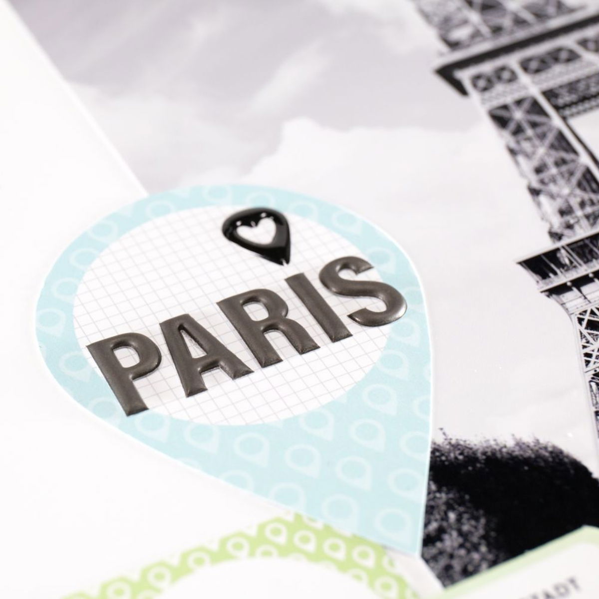 Información sobre el producto "Papel de diseño - Designline - Scrapliebe - Reise - Labels - Doppelseitig bedruckt"