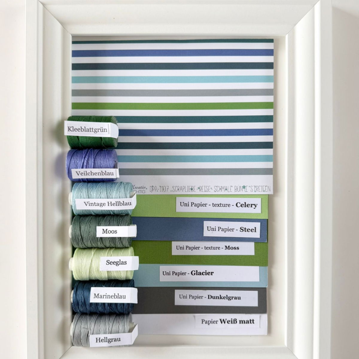 Información sobre el producto "Papel de diseño - Designline - Scrapliebe - Reise - Schmale bunte Streifen - Doppelseitig bedruckt"