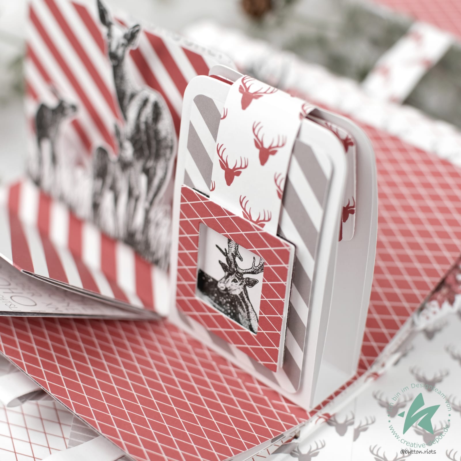 Papel de diseño - Scrapliebe - Dezembertagebuch - Hirschköpfe - Rot - Doppelseitig bedruckt