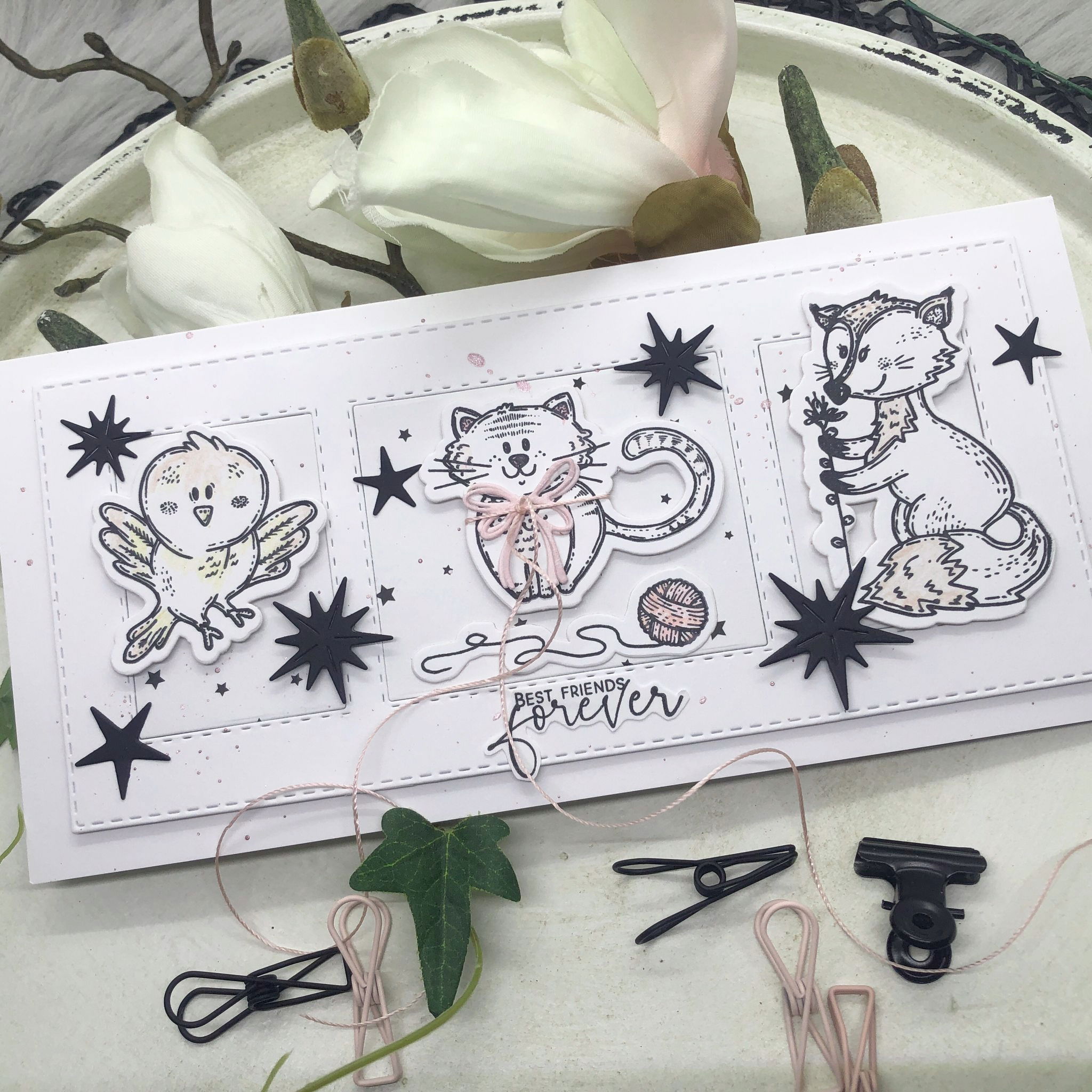 El conjunto de sellos de fotopolímero "Tierisch gut " aporta una colorida fiesta animal a tu papel con 17 alegres sellos en una hoja A5 de