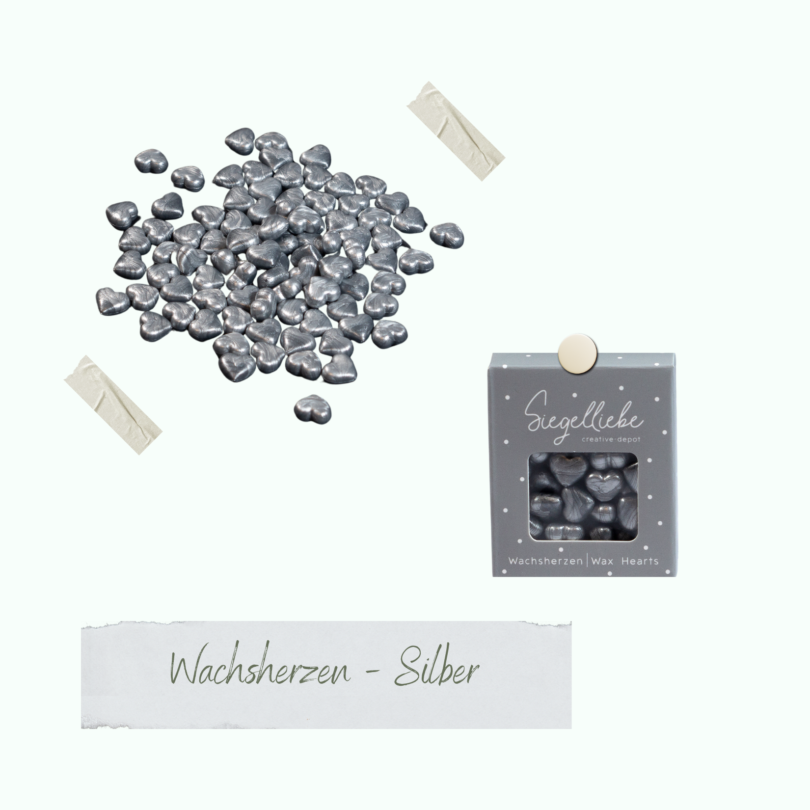 Información sobre el producto "Wachsherzen - Silber - Siegelliebe "