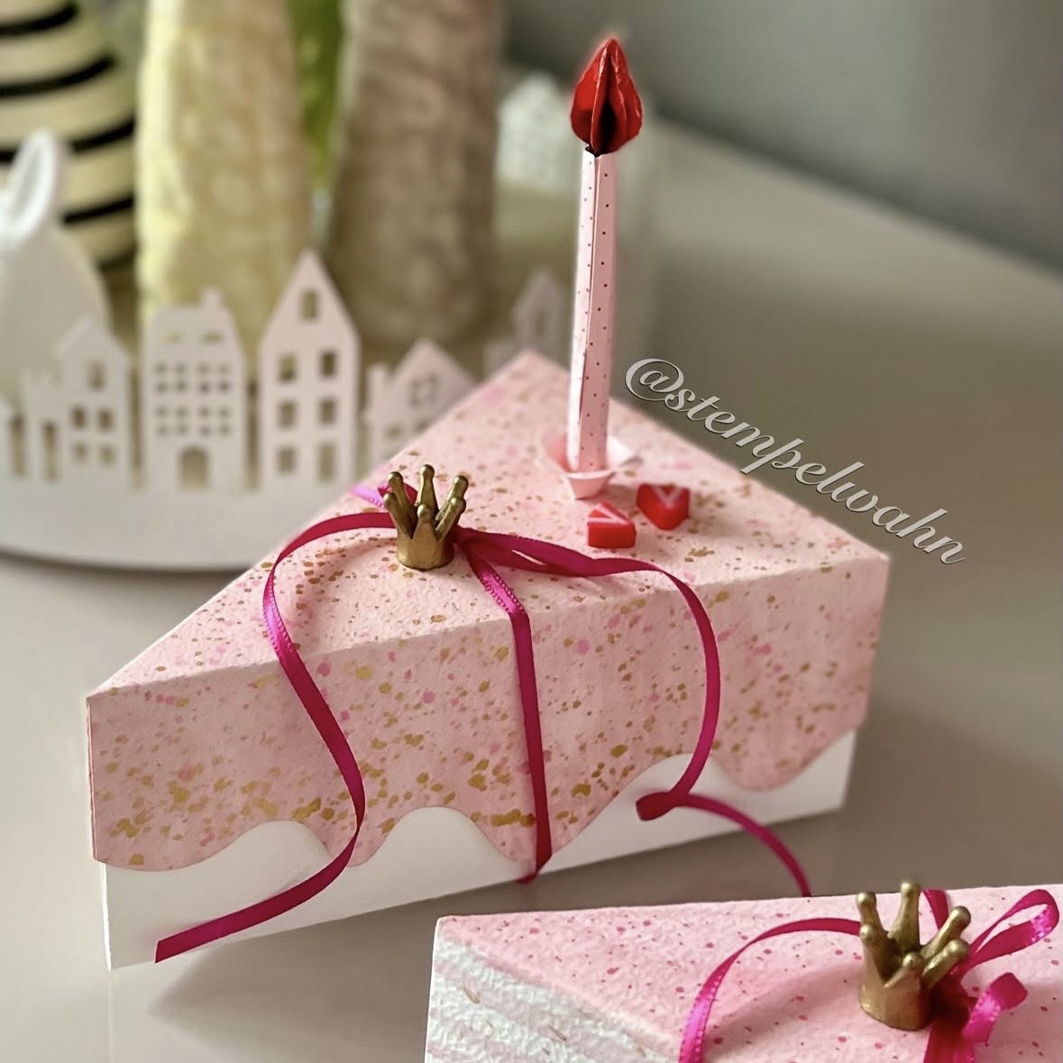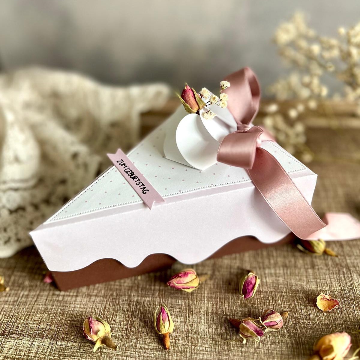 podrás crear en un santiamén pequeños envoltorios de regalo con forma de porción de tarta. 🎉 Ya sea para cumpleaños, bodas, baby showers o como una bonita decoración de mesa, esta original caja te garantiza caras de alegría.
