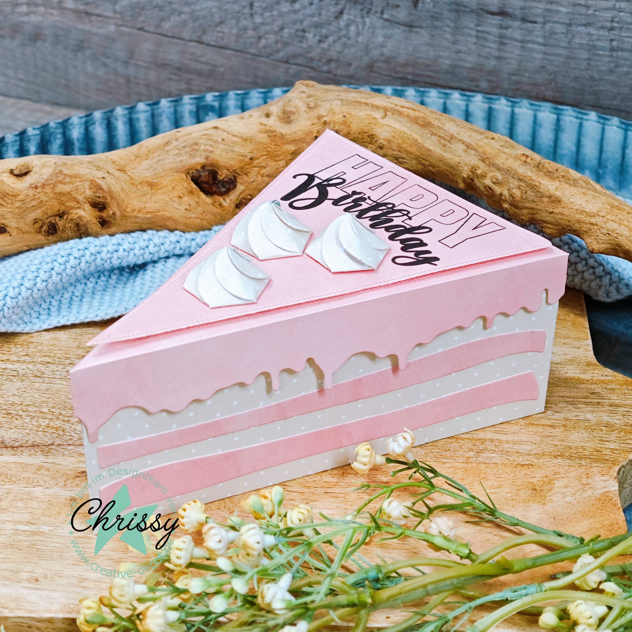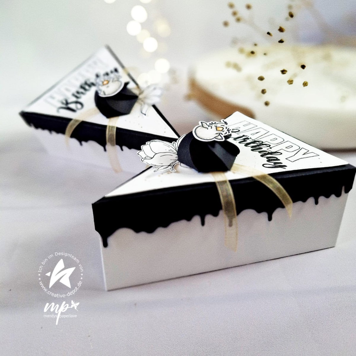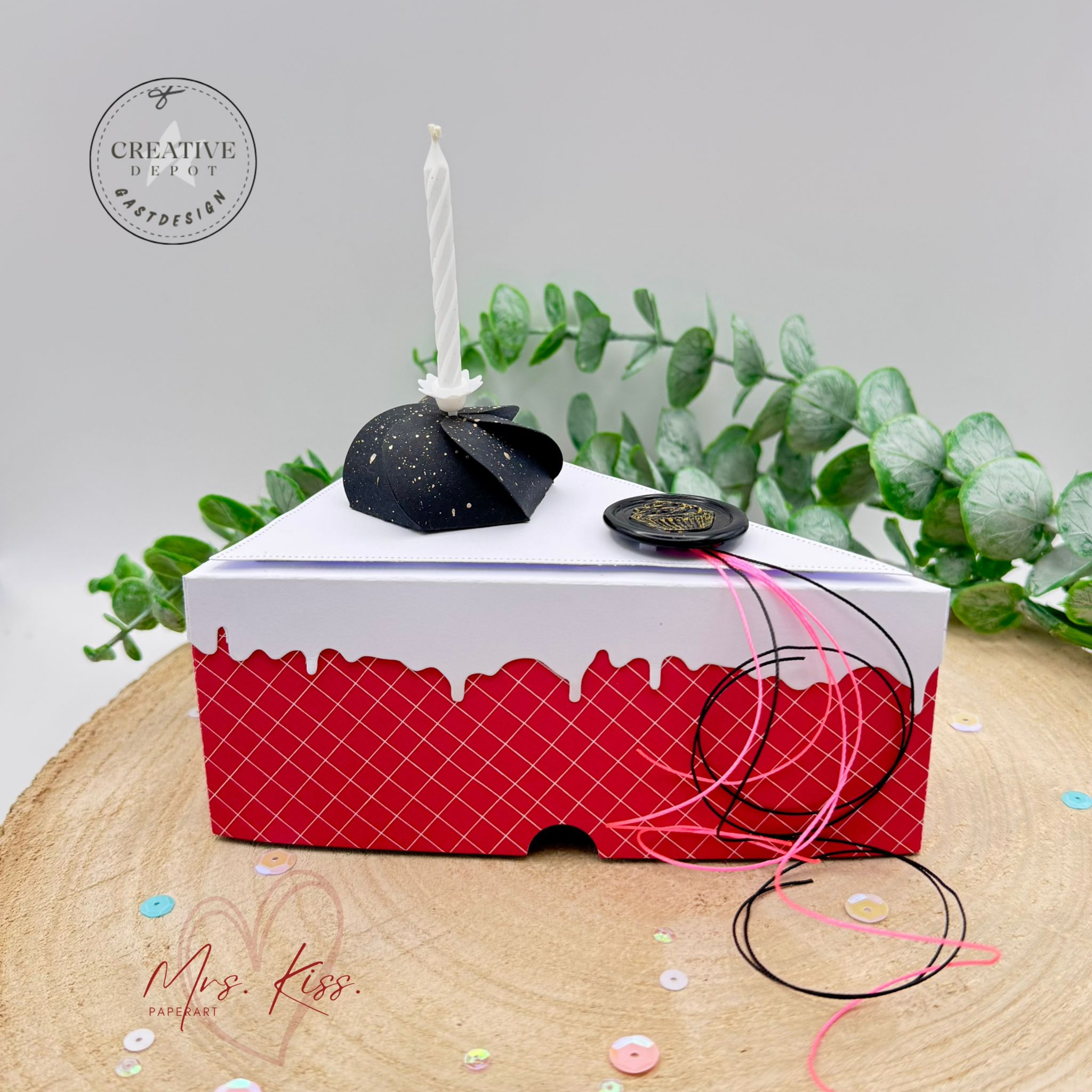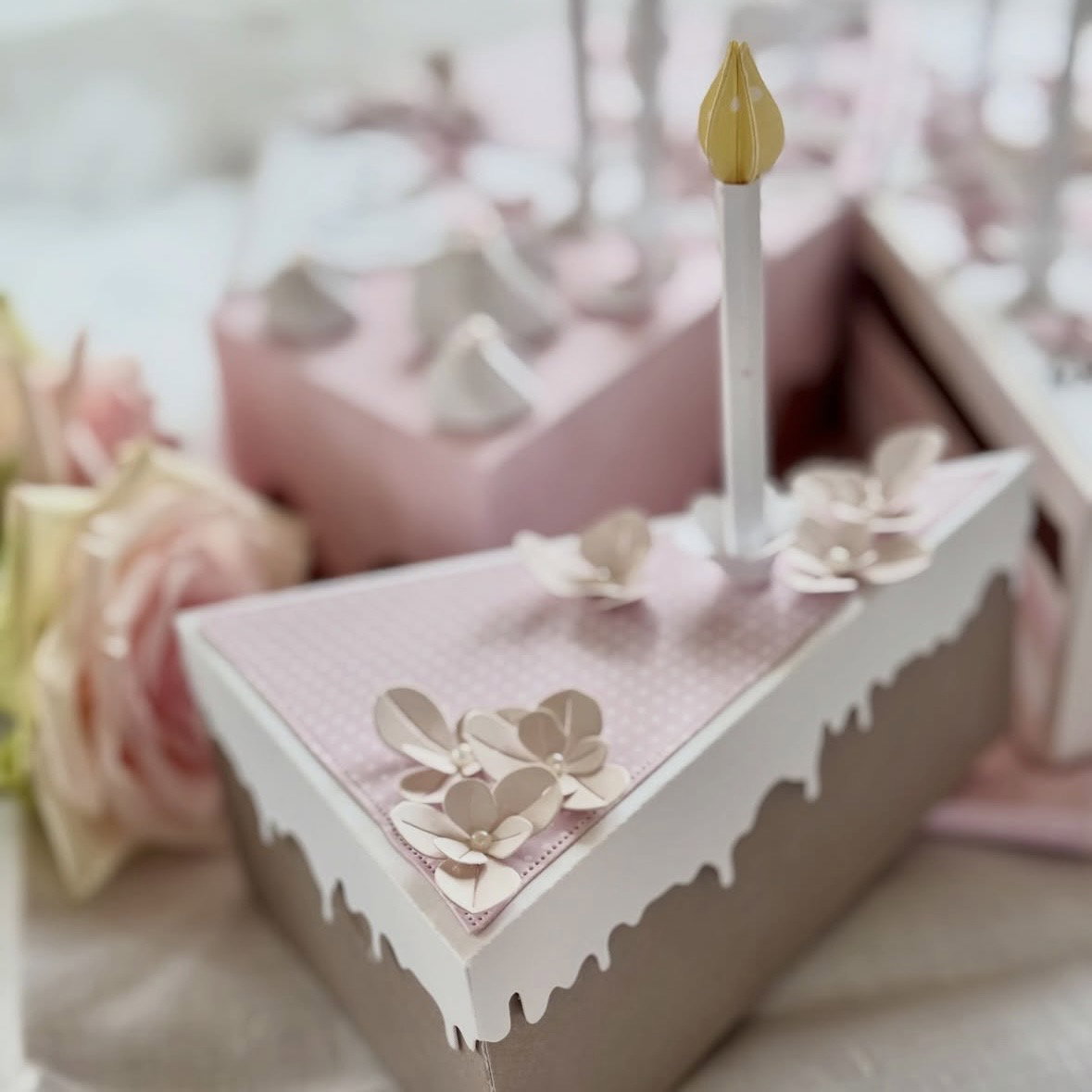 El complemento se ha diseñado especialmente para la caja triangular «Porción de tarta» y la completa a la perfección con un borde decorativo de nata y un elemento de cobertura a juego para la parte superior. Así se crea en un abrir y cerrar de ojos una minitarta de papel diseñada con mucho cariño. 🎂