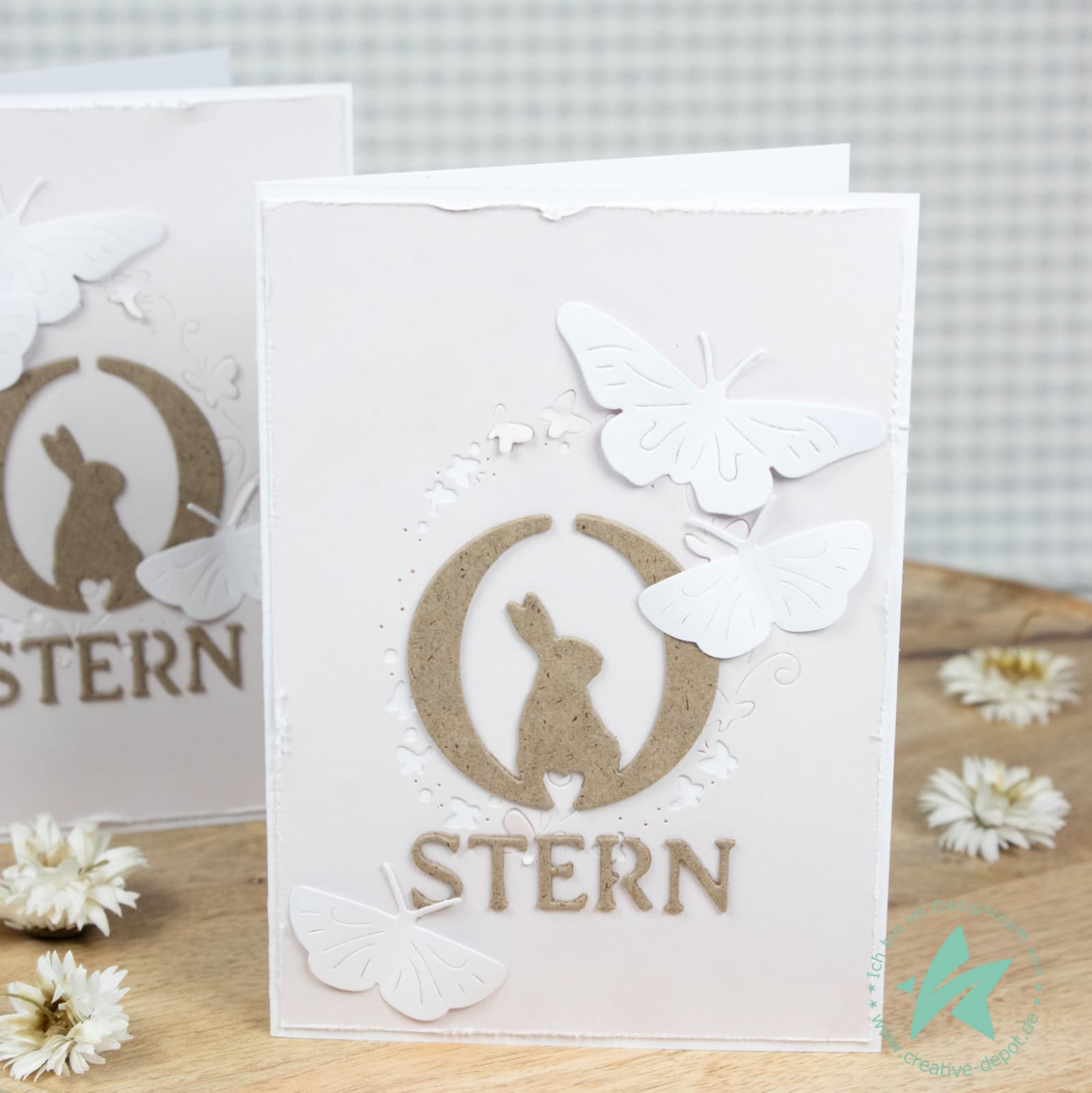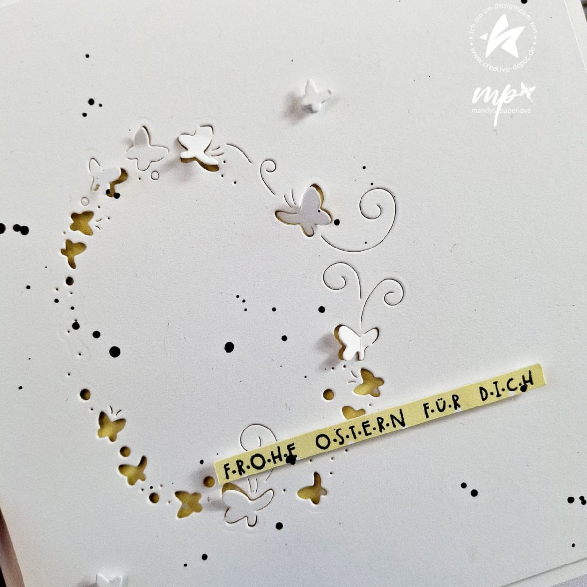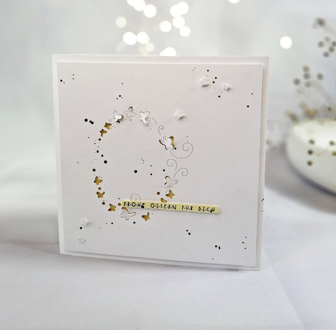 Ya sea simplemente con cartulina blanca sobre fondo pastel o con un fondo colorido, el "huevo de mariposa " da a tus proyectos un aspecto elegante, casi flotante.