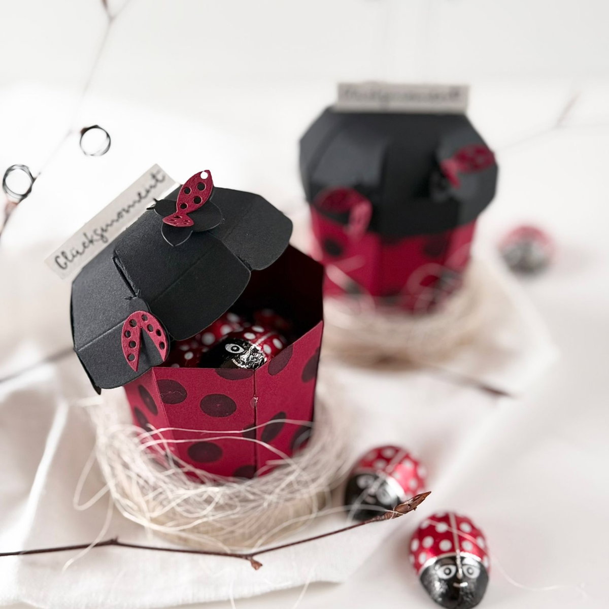 Con el punzón "Mariquitas", puedes crear simpáticos y detallados bichitos de la suerte de papel en un abrir y cerrar de ojos. Los elementos individuales se pueden combinar de forma creativa para crear tu propia mariquita en diferentes variaciones.