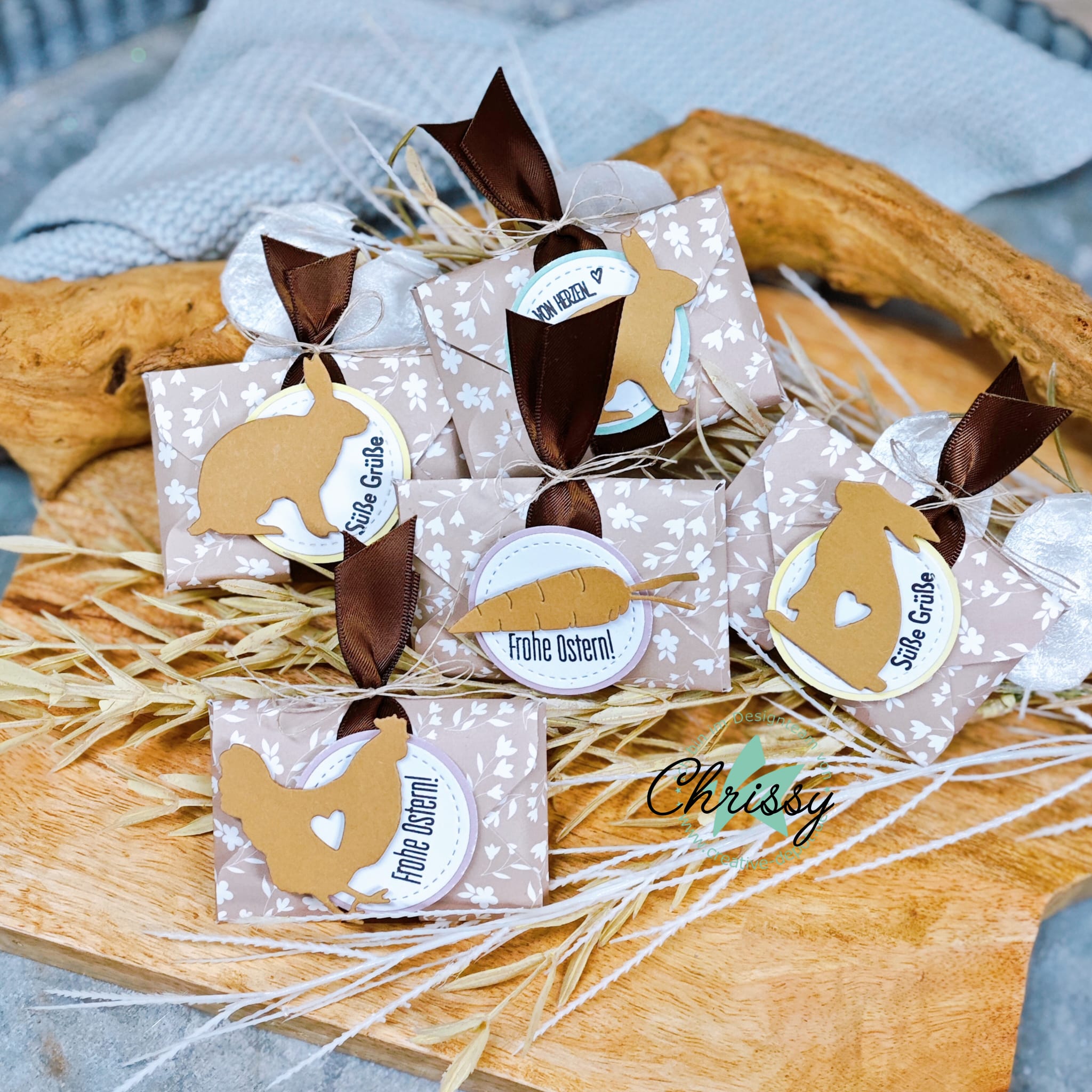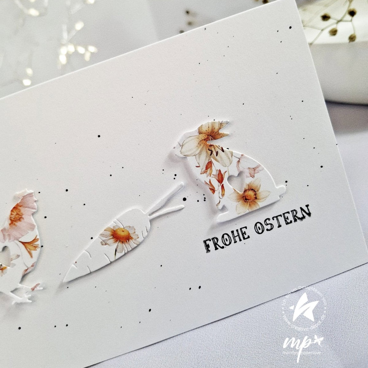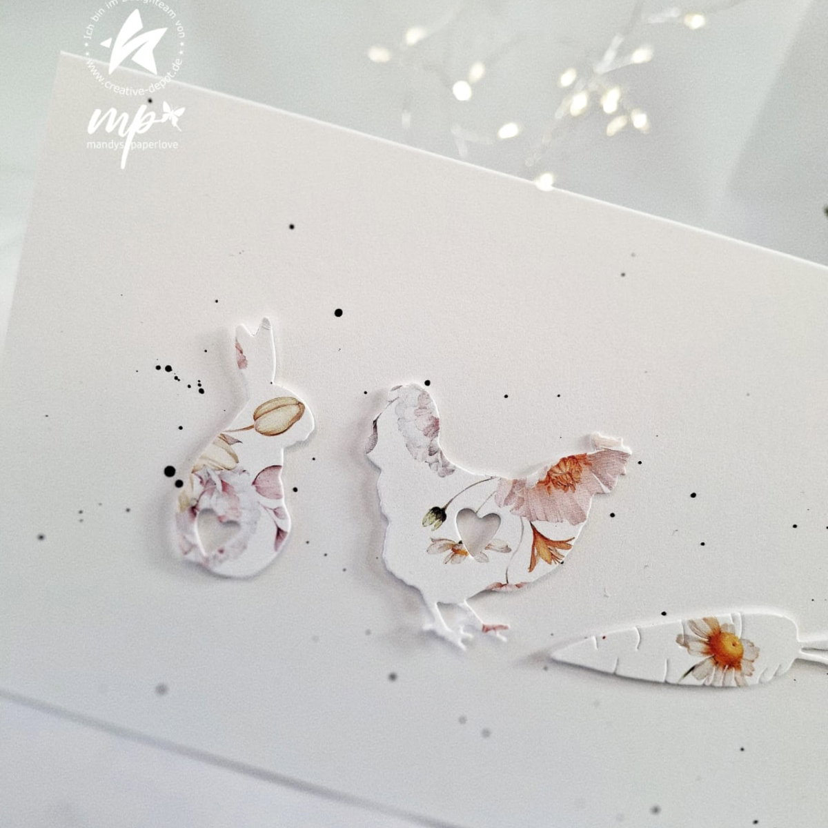 Los contornos transparentes pueden troquelarse maravillosamente en cartón kraft, papel pastel o finos papeles especiales. También se pueden combinar en varios colores o decorar con pequeños lazos para crear felicitaciones de Pascua muy personales en un abrir y cerrar de ojos.