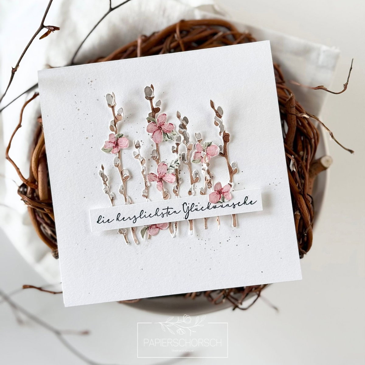 Con la troqueladora "amentos de sauce ", puedes llevar los primeros saludos de la primavera directamente a tus tarjetas e ideas decorativas. Las delicadas ramitas con sus típicos amentos tienen un aspecto maravillosamente ligero y natural, perfecto para proyectos de Pascua, tarjetas primaverales o elegantes diseños de naturaleza.